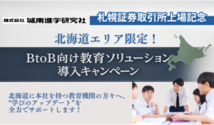2026年4月9日(木)、株式会社城南進学研究社(所在地:神奈川県川崎市、代表取締役社長CEO:千島克哉、以下「当社」)は、東京証券取引所スタンダード市場に加え、札幌証券取引所へ上場いたします。これを記念して、北海道エリ […]